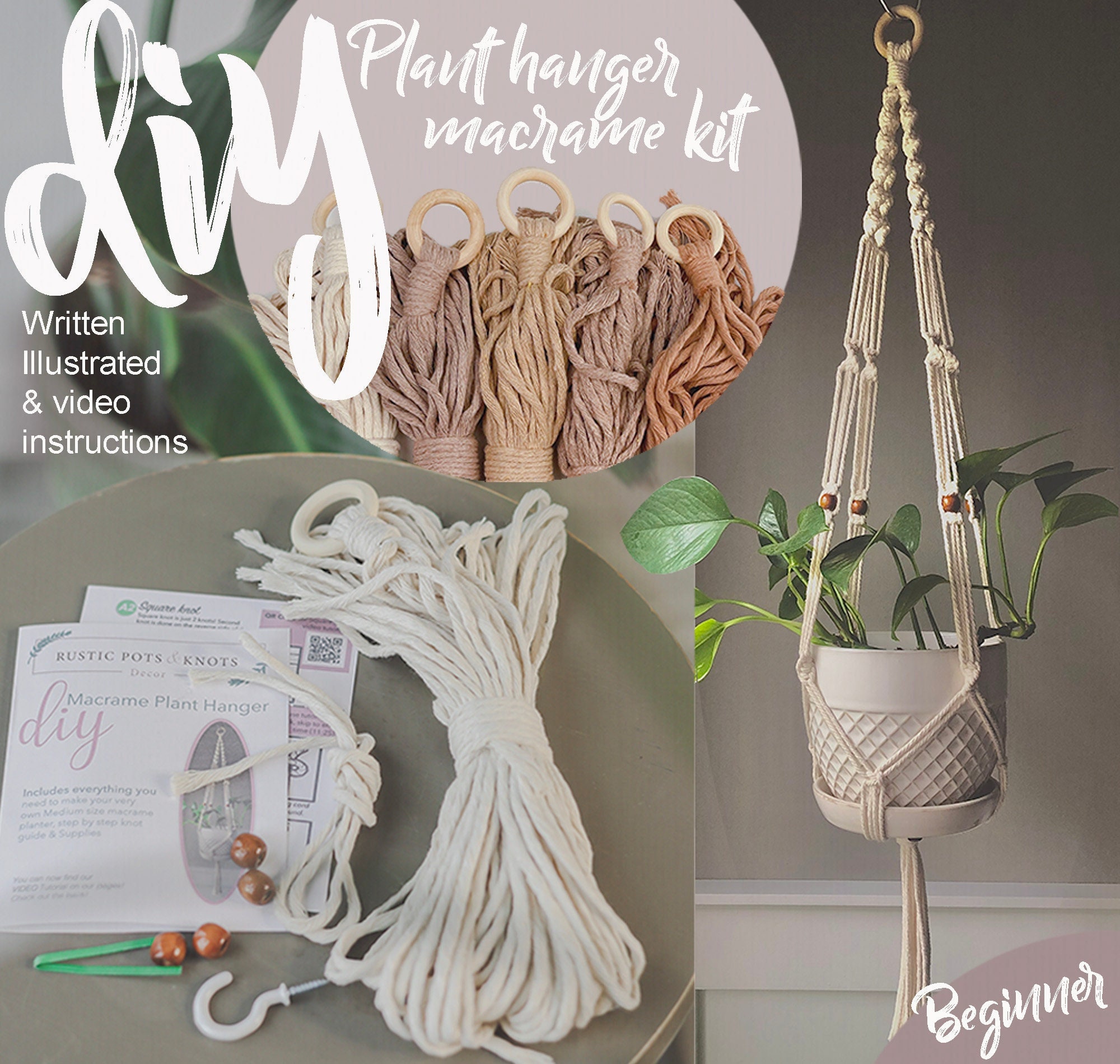 Macrame Diy Hanging Planter Do It Your Self Video Etsy